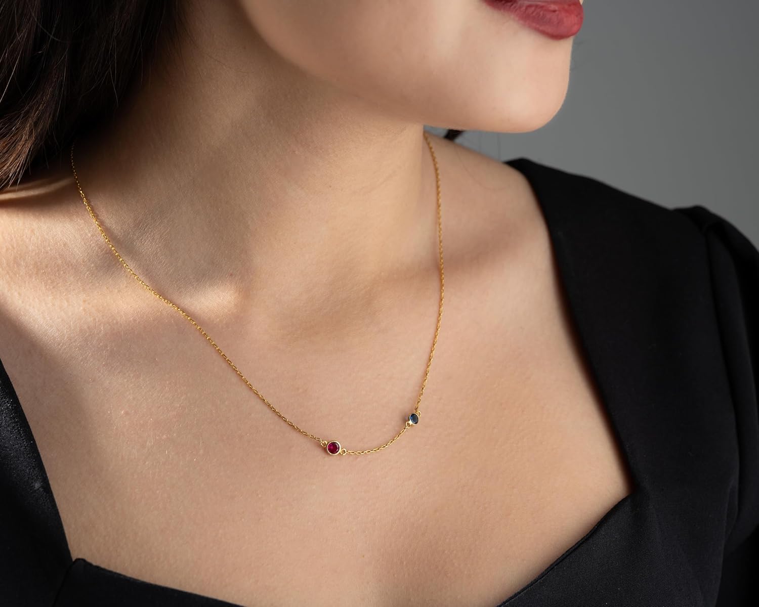 Personalized Birthstone Necklace For Women, 925 Sterling Silver