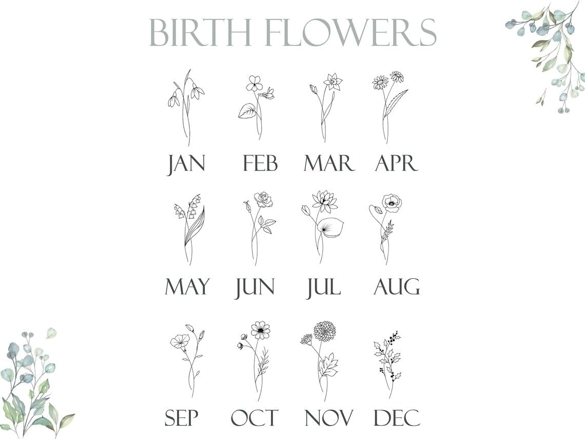 Custom Birth Flower Name Necklace with Birthstone, 925 Sterling Silver