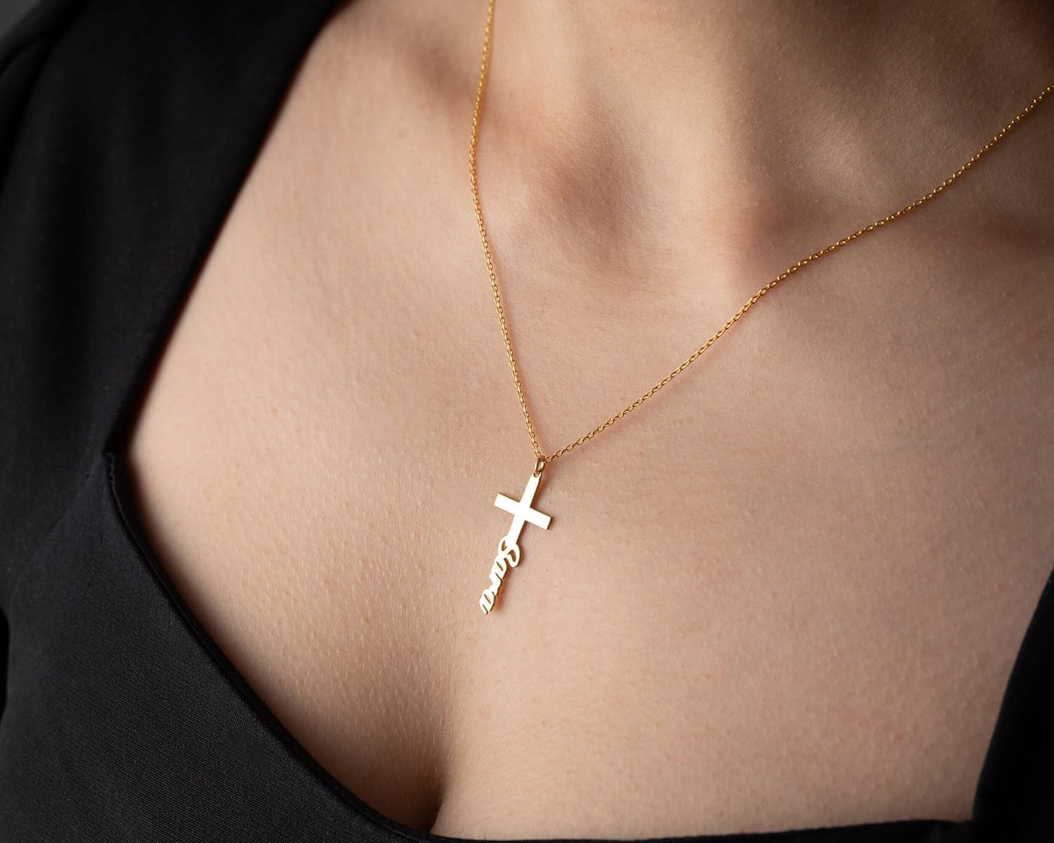 Personalized Cross with Baptismal Cross Name Necklace, 925 Sterling Silver